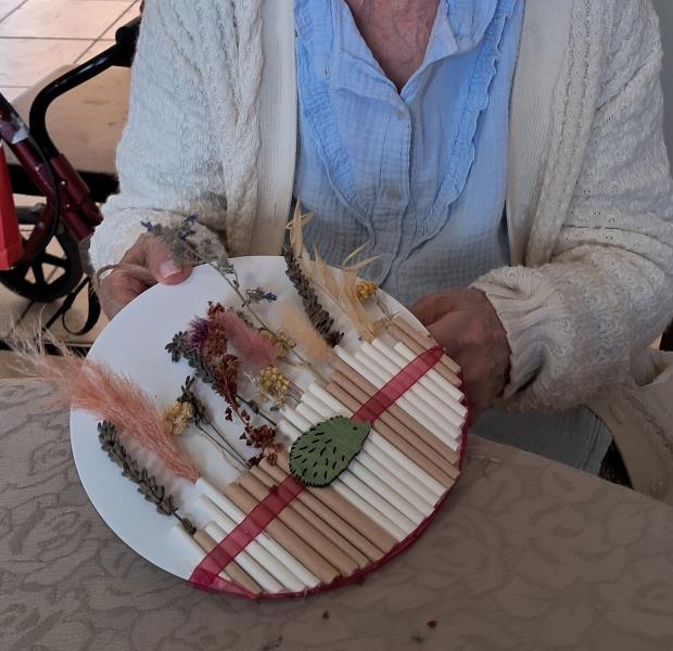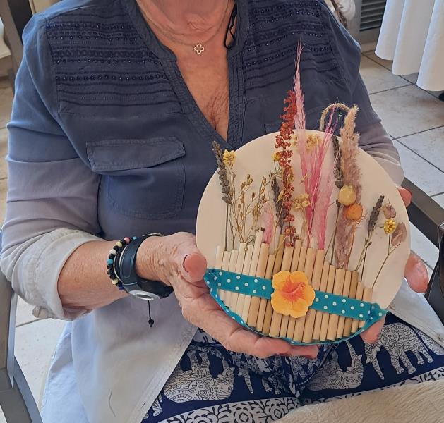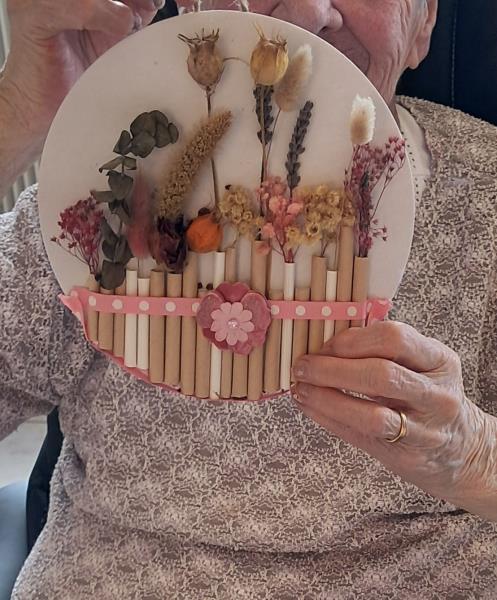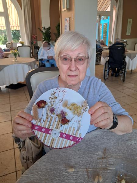 Un bel atelier d'activités manuelles animé par les bénévoles "Les blouses roses". Nos résidents ont fait appel à leur créativité pour réaliser ces tableaux tous plus jolis les uns que les autres. Bravo à eux et merci aux bénévoles
