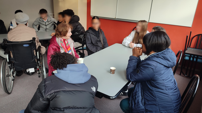 Les élèves de seconde étaient venus à la résidence en octobre, vendredi dernierce sont les résidents qui sont allés au lycée! Impressionnés par la taille du lycée et le nombre d'élèves, certains se sont remémorés leurs années d'études avec parfois une certaine nostalgie. L'accueil des élèves a été formidable et les conversations ont pu reprendre. Les élèves ont fait découvrir aux résidents les réseaux sociaux, les influenceurs, les musiques d'aujourd'hui, tout un univers qui les a laissé un peu ébahis mais amusés