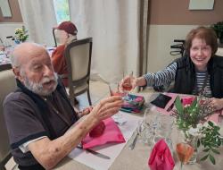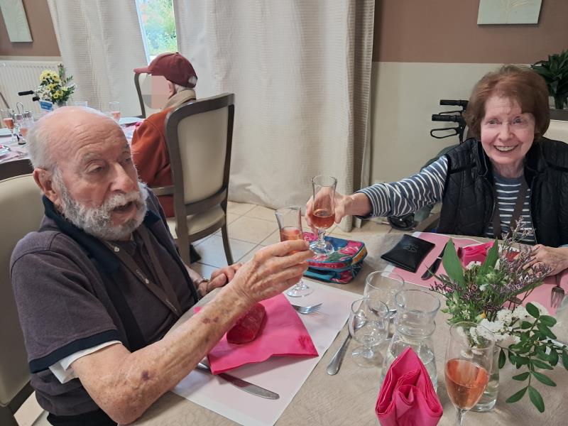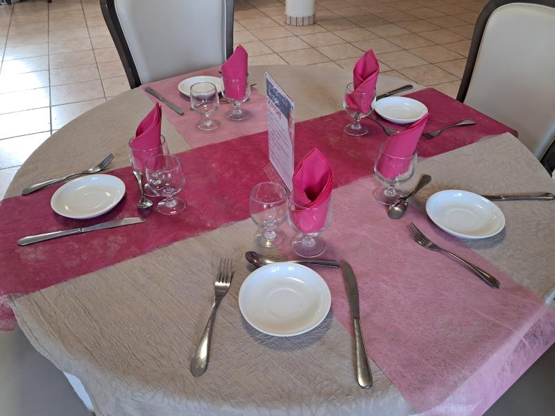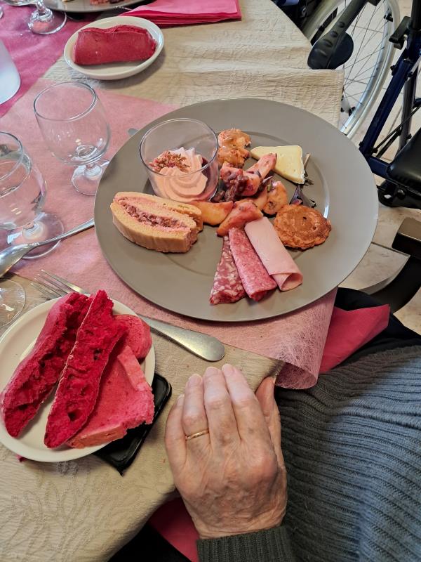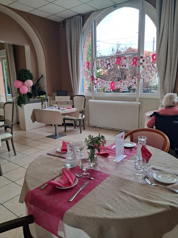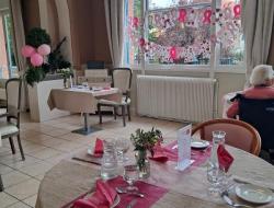 Un déjeuner rose pour Octobre rose. Déco rose, pain rose .... crémant rosé à l'apéritif, les résidents ont été charmé