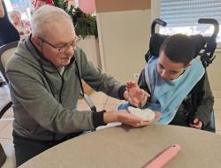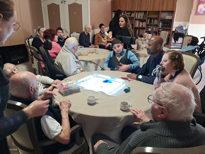 Un beau rendez-vous avec les enfants de l'IME "Les papillons blancs". Un atelier autour d'activités sensorielles auquel les résidents ont participé avec grande attention et gentillesse. C'est la deuxième rencontre avec les enfants et des liens commencent à se créer pour le plus grand bonheur de tous. (équipe et résidents)
