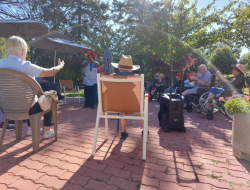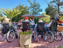 Ce jeudi, les résidents ont profité du soleil et de la chaleur raisonnable pour réaliser une séance de gym douce puis de relaxation dans le jardin