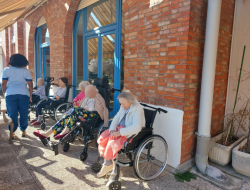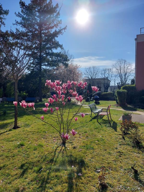 En cette belle et chaude journée d'hiver, chacun profite du jardin à sa manière : discussion sous les stores bannes, sieste sous les arbres ou encore se détendre en appréciant le plein air