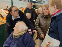 Un moment fort de cette sortie a été l’échange inattendu de Monsieur L, résident, avec un ancien collègue rencontré au détour d’une allée du marché.