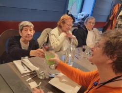 Dès notre arrivée, nous avons ressenti la complicité qui unit les résidents : choix de places spontanés, regards complices et petits mots échangés en trinquant.